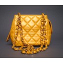 Authentic Chanel Leather Shoulder Bag in a stunning vivid yellow mustard soft quilted lambskin. It has an attractive signature Chanel leather frame pendant on the top zip closure, intertwined leather golden straps and a "CC" logo stitched on the bottom of the bag. A perfect stylish touch for any outfit occasion. This beauty offers an interior, fully lined in black leather, with a convenient zip pocket and a patch pocket. A truly eye-catching and very exceptional color you won't find often. Don’t miss out.