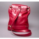 This stylish Chanel black lambskin leather backpack is great for ultimate hands-free convenience. Its exterior features ultra soft red lambskin leather with a "CC" logo stitched on the front flap of the bag, and a one side shoulder buckle strap. Its interior, fully lined in red textile, closes with a drawstring and features a roomy main compartment with one cosmetic pouch attached. This is a perfect opportunity to get a fabulous authentic Chanel backpack for an incredible price.