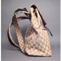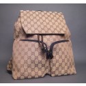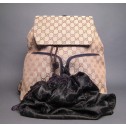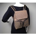 This Gucci Monogram Gg Backpack is a chic and sophisticated everyday bag to carry all your daily essentials with ultimate hands-free convenience. It is made out of the traditional monogram toile canvas with brown leather trim. Its exterior features adjustable shoulder buckle straps, a large handle on the top back by the straps and two convenient zipped front pockets. It closes with a magnetic snap flap and a drawstring for added security. Its interior is lined in brown textile and comes with a convenient zip pocket. This is a perfect opportunity to get a fabulous authentic Gucci backpack for an incredible price.