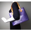 This authentic classy Louis Vuitton Purple Monogram Vernis leather shoulder bag is accented with natural cowhide trim. It securely closes with a zipper on the top. The Houston model is an ideal city bag. Inside, there is plenty of space for carrying all the daily essentials without worrying about anything falling out. The interior leather lining features a ring, one convenient patch pocket and one zipper pocket. This unique design of Monogram vernis symbolizes both fashion and classic. No matter where you go, the accompaniment of your Louis Vuitton Houston will enable you to become the focus in the spotlight.
