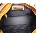 Available for your consideration is this New Authentic Balenciaga Cumin City bag. This light brown color is from the 2013 Fall Collection. It is made of soft distressed lambskin leather combined with raised brass hardware. Is exterior features two comfortable braided handles, a padded detachable shoulder strap and a zip top closure. Its interior in black textile has a convenient zipper pocket, and leather string tassels on the zipper pulls. A great bag for any Balenciaga lover.