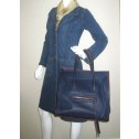 This is an authentic Celine Phantom Large handbag in midnight blue leather. Its exterior features orange trim, silver tone hardware, two comfortable rolled handles, and a front zip pocket adorned with a braided leather zip pull. Its interior is lined in a matching blue suede fabric and features a spacious main compartment with a zip pocket. Don’t miss the chance to make this elegant and Celine Phantom satchel bag your own.