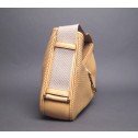 This is a unique Gucci perforated leather shoulder bag in tan beige color. Its exterior features smooth leather trim, a comfortable wide strap and a golden tone signature clasp closure. Its interior comes with a small zip pocket attached to the bag with a long strap. Don't miss out.
