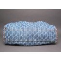 This is a stunning Gucci Sukey tote in blue monogram Gg denim with brown leather trim and straps and light golden metallic hardware. This classic tote features double comfortable shoulder strap and an open top with snap tab closure. It is embellished with a detachable GG pendant from a golden ring. Its interior, lined in natural canvas, is very roomy and offers one interior zip pocket. This Gucci tote is large enough to carry all your belongings. A beauty you will not resist.