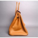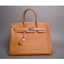 Coveted by so many celebrities, is this guaranteed authentic Hermes Birkin Gold Togo Leather 35 cm. The Hermes Birkin stand alone as the most sought after, impossible to find, and collectable bag ever made. The hardware is silver, which includes lock closure and feet. The interior features one zipper pocket and one open patch pocket. This Birkin is a true timeless masterpiece that will become the crown jewel of your bag collection!