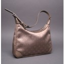 Available for your consideration is this like new elegant authentic Louis Vuitton Satin Mini Boulogne Bag. It is made out of metallic signature brown satin fabric with smooth leather trim and strap. Its exterior features an adjustable shoulder strap and closes with a top zipper. This is a perfect evening or chic Louis Vuitton day bag.