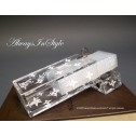 This Louis Vuitton Domino travel set was only given to VIP clients from Louis Vuitton. The set is brand new and never used. The Dominos are stored in the beautiful hinged, lidded trunk with silver hardware made of plexi-glass with the LV icons and leather tie string. A fabulous and rare LV VIP set that makes a wonderful companion for travel, a fabulous corporate or personal gift or for the LV collectors.