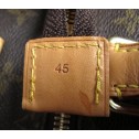 The Louis Vuitton Monogram Canvas Cruiser 45 has a long tradition of traveling in style. It is easy to carry with its comfortable rounded. A removable ID holder can be hanged from one handle. It is made out of the classic monogram Canvas with cowhide leather on the trim and handles. This functional soft suitcase securely closes with a double zipper and a buckle. Its roomy interior features a convenient patch pocket. Perfect for packing up for a luxury weekend getaway.