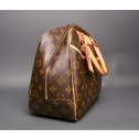 This Louis Vuitton monogram canvas Deauville Vanity Handbag is ideal for holding your daily essentials in an elegant manner. It is made in the timeless monogram canvas with natural cowhide vachetta leather trim and handles. Its exterior features a convenient open pocket on the front. A double top zipper opens to reveal a washable interior with four compartment pockets and elastic holders for bottles, cosmetics, brushes and anything you might want to take on an unexpected overnight trip. With this organized and accessible bag, you can be sure to eliminate clutter with ease. Don’t miss out.