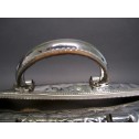 | Condition | The exterior vinyl is clean and beautiful, but throughout there are slight scuff marks and areas of creasing. The handles have creasing to the underside. The silvertone hardware has surface scratches. The interior is clean and in good condition, but there is red slight spot on the bottom (please see photos). |