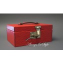 A SUPER rare Louis Vuitton epi leather Boite a Tout Jewelry Case made of the red epi leather with cross grain red leather lining and leather handle. Locks with the flat lock which is rare and comes with the key. Stunning black (rare) contrasting stitching and has the Louis Vuitton heat stamp in gold to the interior as shown. Lock works fine and in overall excellent condition. This is quite rare and we have not seen one in the epi red leather at all....anywhere