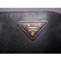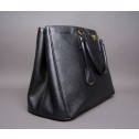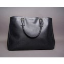 This is a stylish and sophisticated Prada Black Saffiano Lux leather tote bag. It features golden tone hardware, two rolled handles, and a signature Prada clochette for the keys. It offers a roomy interior with three flat pockets and a zipper pocket. Its interior is lined in a signature fine jacquard textile. With its large size this bag is ideal for carrying your every essentials. Don’t miss the chance to make this beauty your own.