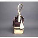 Be a trend-setter with this casual chic Prada Brown Canvas Doctor Tote Bag. This bag is made out of durable canvas exterior with beautiful ivory leather on the trim, bottom and handle, and silver-Tone hardware. Its exterior features a double zipper bottom compartment and a Prada detachable hang ring. It securely closes with a top silver tone clasp engraved with the Prada signature. Its interior, fully lined in a brown signature textile, offers a zipped pocket. This tote has the capability to hold all your daily essentials very well organized. Casual luxury is what we covet.