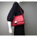 Stylish and functional, this Prada Red Saffiano Leather Shoulder Bag will surely bring on compliments. It exterior features a front flap that securely closes the bag a signature metallic frame. Its comfortable shoulder strap is adorned with a side buckle that makes it adjustable. Its interior, fully lined in a matching black signature textile, offers a roomy compartment and a convenient zipped pocket. We can always count on Prada to make something so perfectly chic.